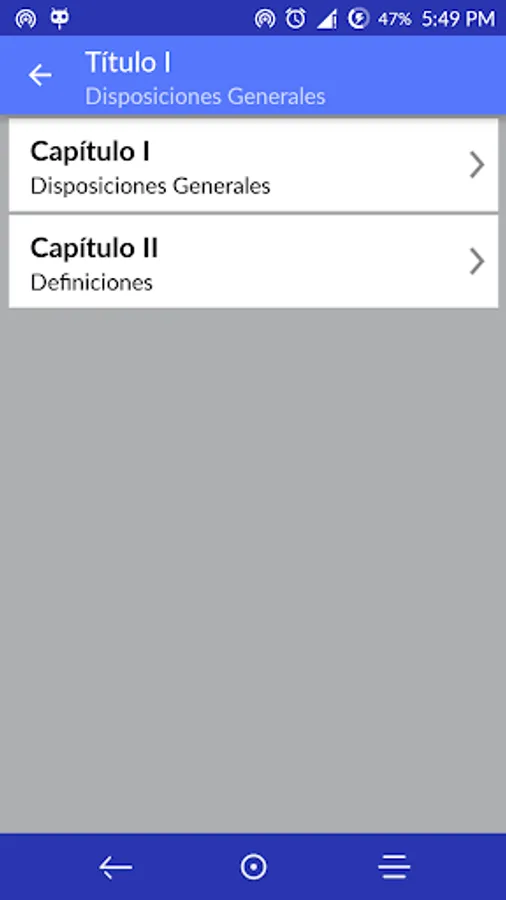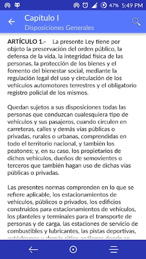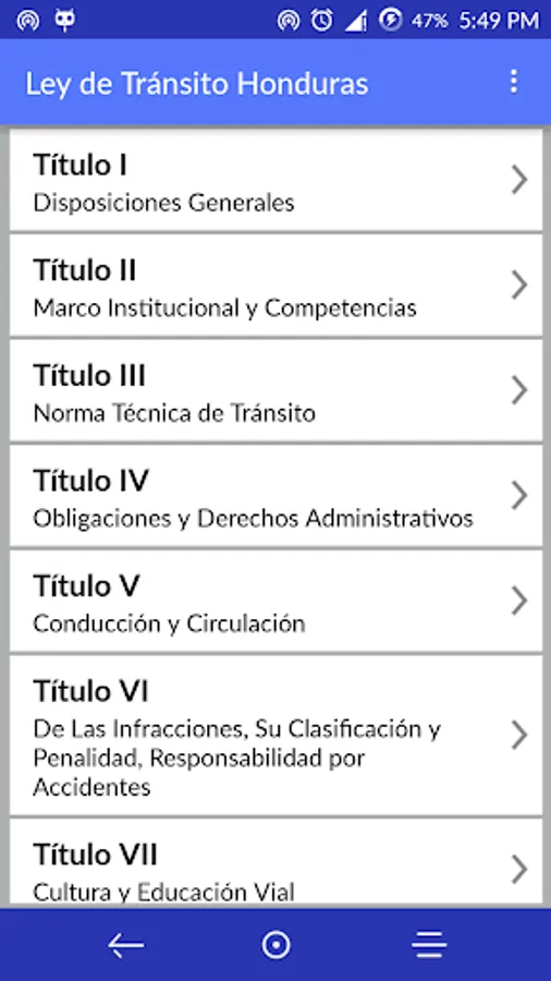 The application is free and is organized by titles, chapters and articles, as well as Internet connection needed to see its contents.