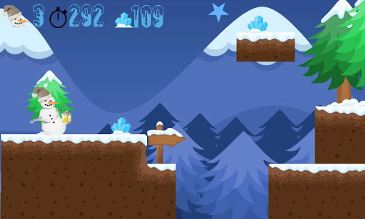 Help the snowman to collect all the crystals and help Santa Claus, crystals scattered throughout the levels, defeat the evil snowmen, consider that time is limited