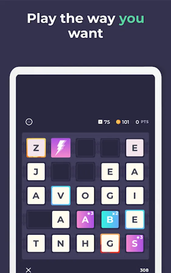 You can utilize powerful special items in creative ways to alter the board and give yourself an edge. This satisfying new breed of word puzzle game lets you take your time if you want to be more methodical, but will also reward players who like to play more quickly.