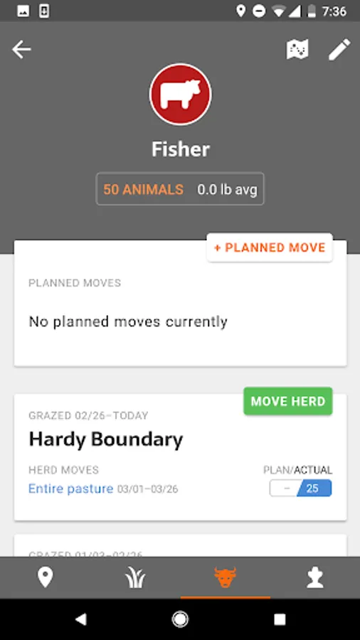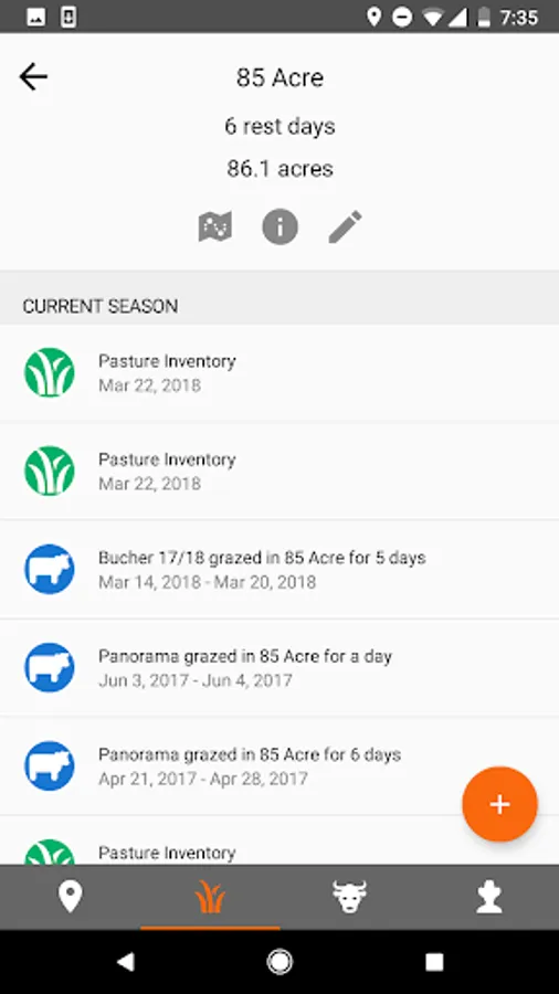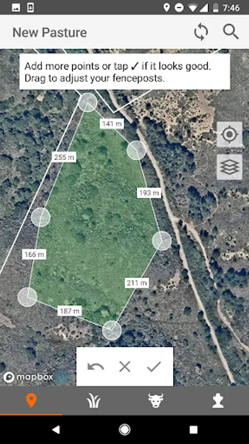 PastureMap works offline when you're in the field. Log in to your account on the web to see your herd management dashboard, animal days/acre, and see how local rainfall and soil data affect your productivity.