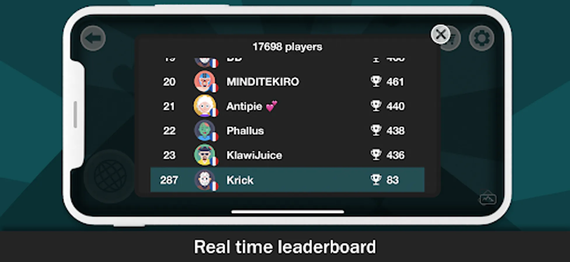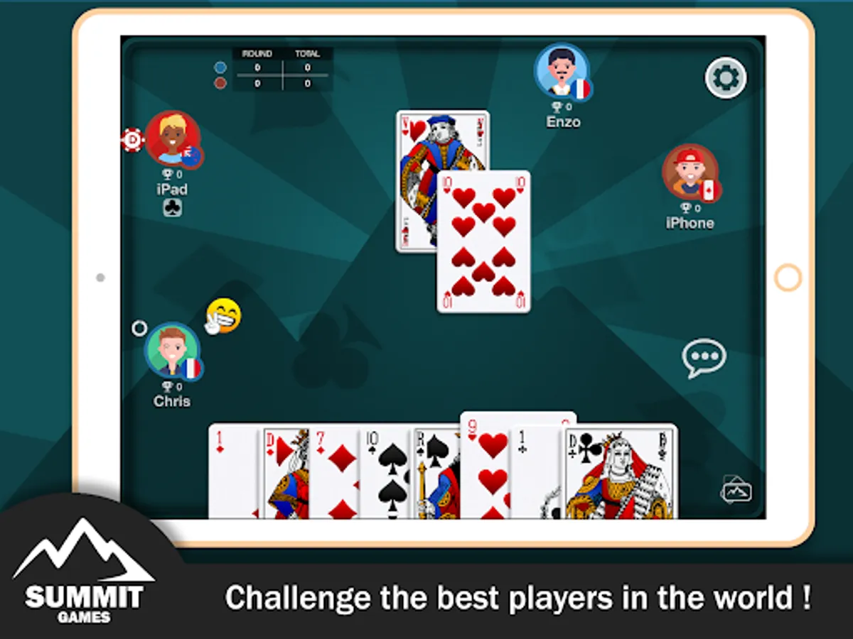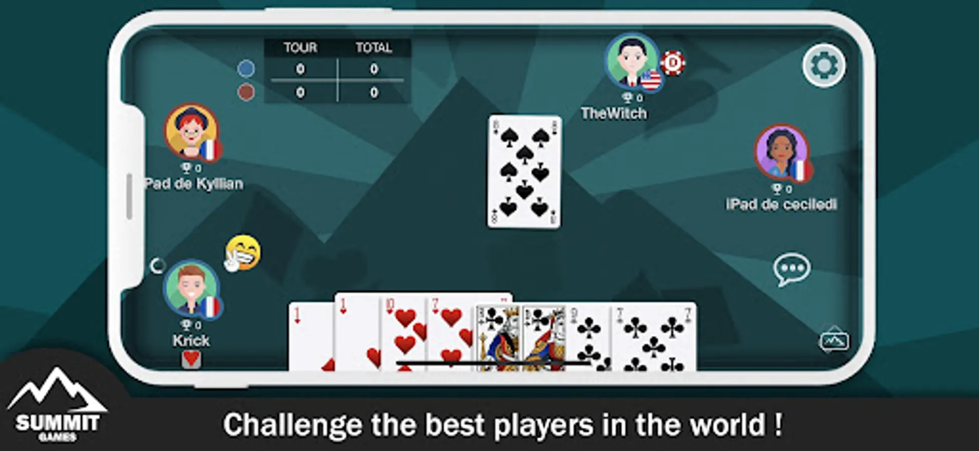 Play Belote game wherever you are with Belote online. Play alone against players controlled by a high level artificial intelligence with a realistic behavior, or compare yourself with other players from around the world.