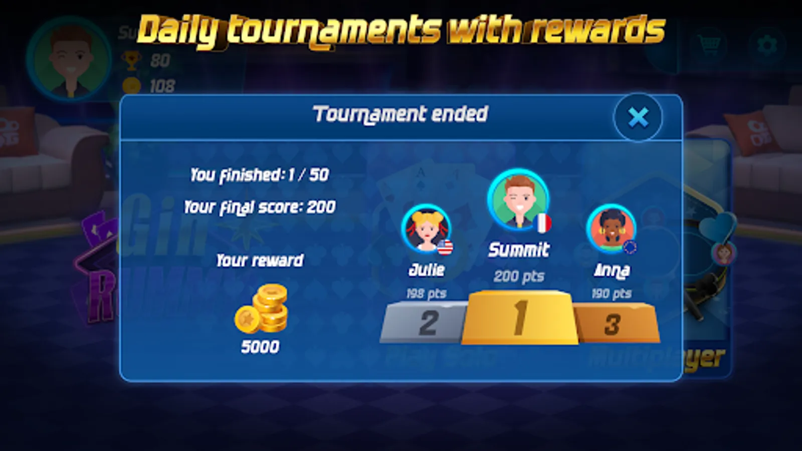 Play Gin Rummy game wherever you are with Gin Rummy online. Play alone against players controlled by a high level artificial intelligence with a realistic behavior, or compare yourself with other players from around the world.