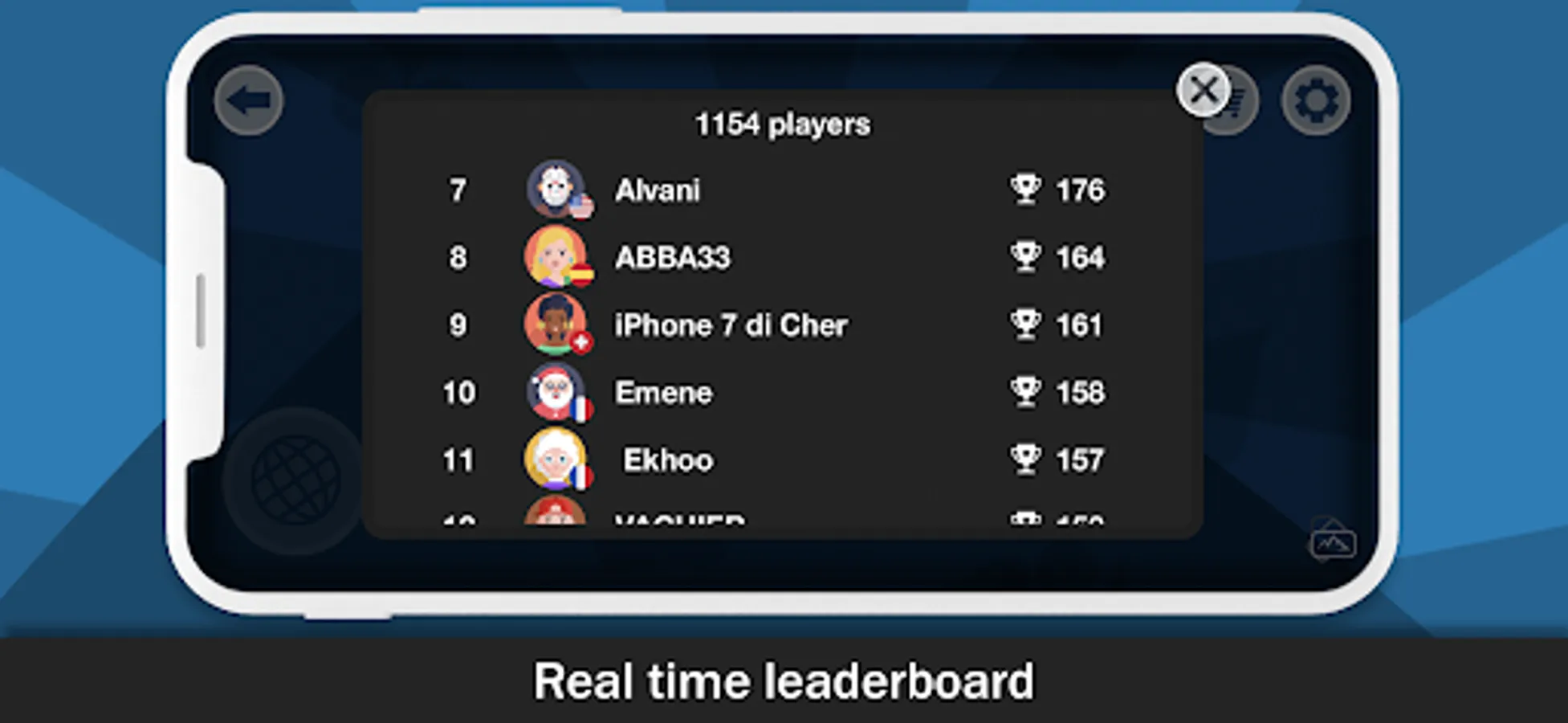 - play online with real players and see your rank in the leaderboard