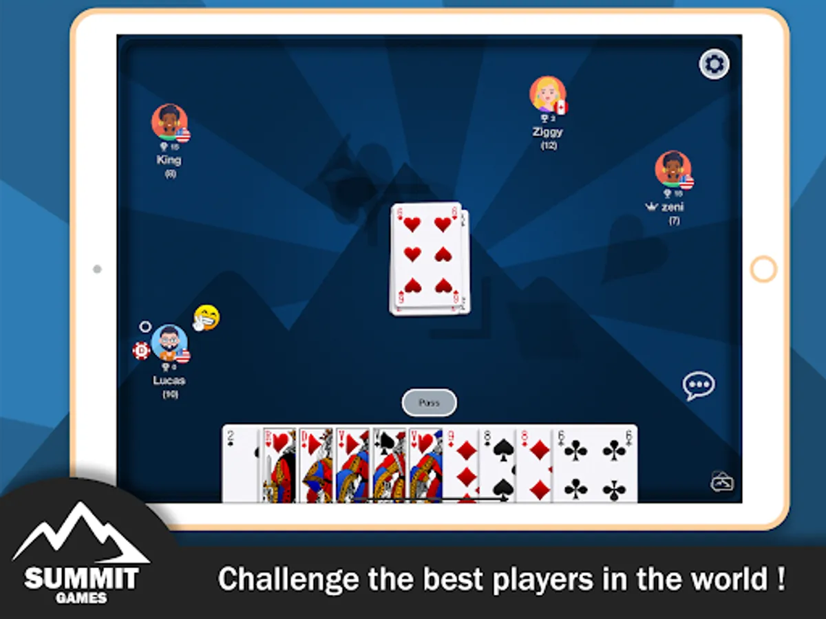 Play President game with 3, 4 and up to 7 players with President. Play alone against players controlled by a high level artificial intelligence with a realistic behavior, or compare yourself with other players from around the world.
