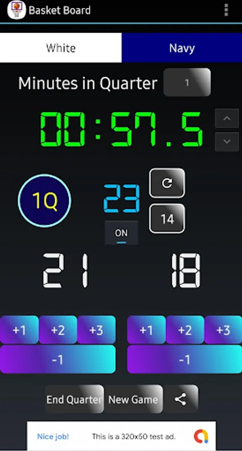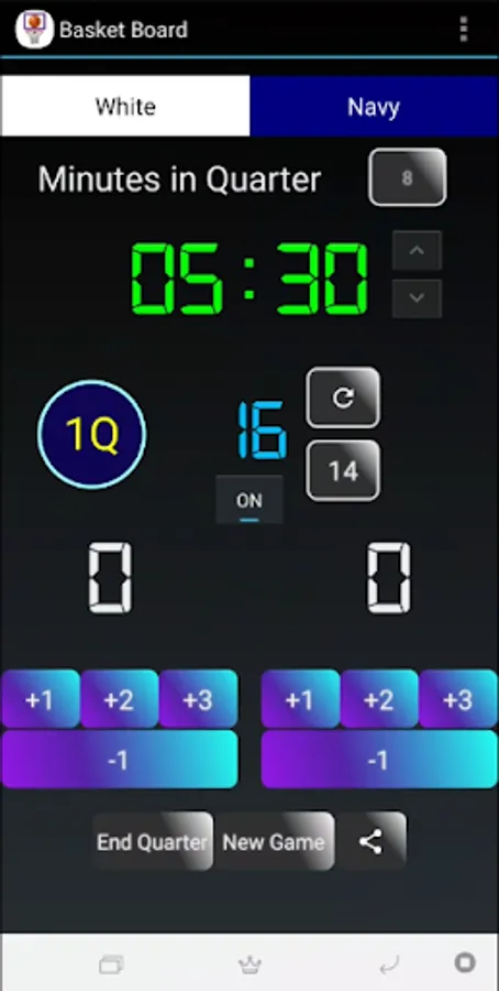 BasketBoard is a revolutionary app that allows you to keep track of your basketball games very easily on your Android device. For starters, it is fully supported in portrait and landscape mode, and the orientation can change even in mid-game without pausing the game. Users will enjoy having dedicated buttons for 1, 2, and 3-point shots as well as -1 for deducting scores. Game clock is synchronized with the shot clock, meaning the shot clock starts automatically when the game starts, and resets to 24 whenever someone scores a basket. Of course, users can turn off the shot clock as they wish in settings. Quarter length can also be changed from 1 to 12 minutes easily. Sounds are an integral part of the app, with different sound bites for scores, end-of-quarter buzzer and shot clock buzzer.