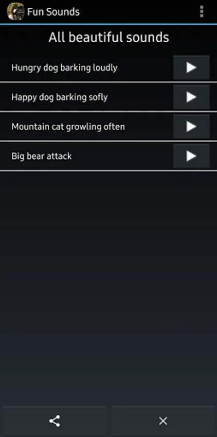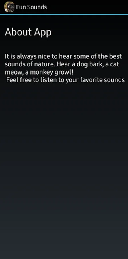 This app is designed to give beautiful natural sounds of nature to people. Sound clips include dogs barking, growling, cats meowing and monkeys growling. Feel free to listen to them to give yourself some quality time.