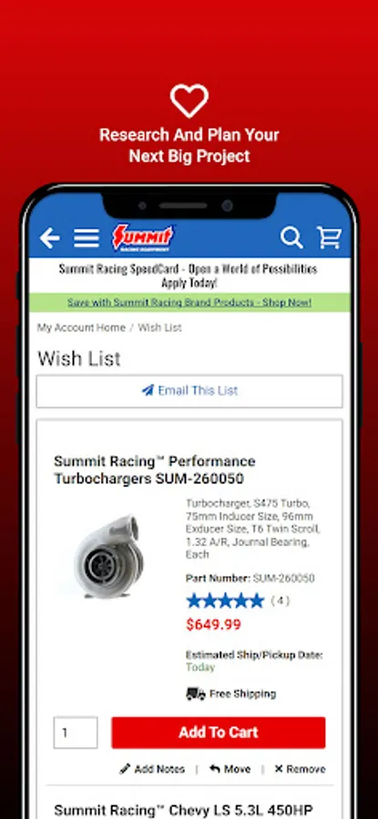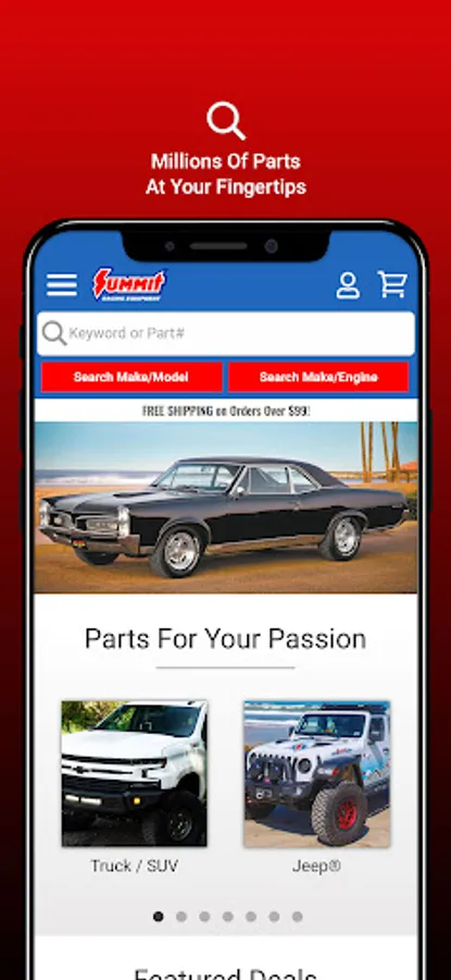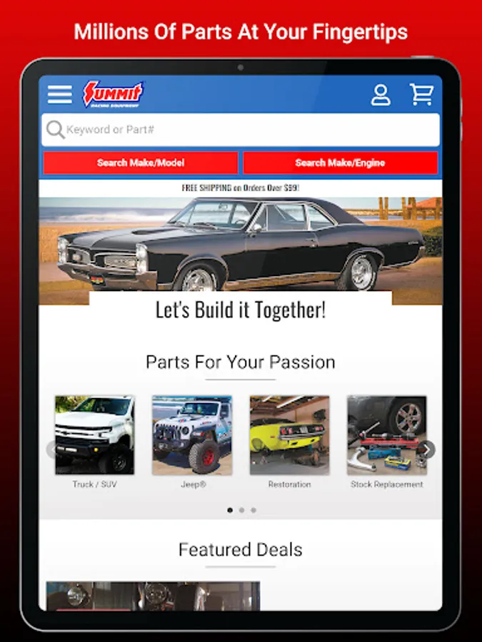 Use the Summit Racing app to easily search for auto parts and accessories. Shop more than 1.5 million auto and stock replacement parts from your mobile device. View the sale items, connect with our social media accounts, and read articles from OnAllCylinders. View your orders, request a catalog, and even watch our YouTube videos. Our events will be listed in the app.