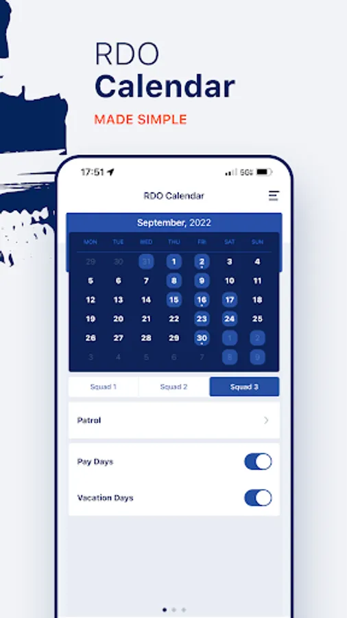 • Supports Patrol, SRG, steady RDO and custom RDO calendar
