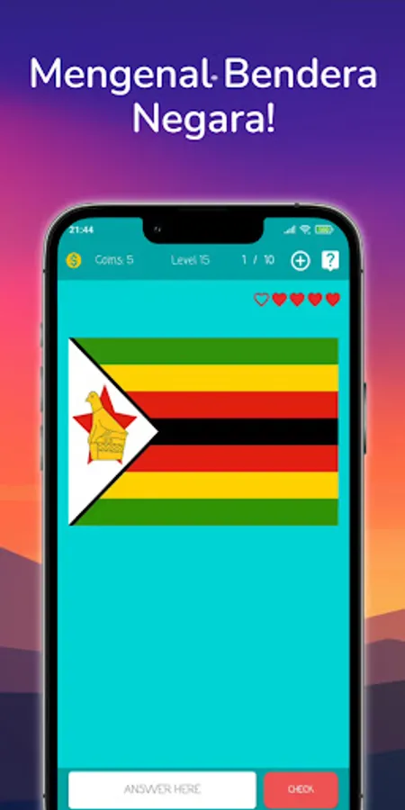 Selamat datang di "Tebak Gambar Bendera Negara" Bahasa Indonesia! Siapkan dirimu untuk petualangan mengagumkan dalam mengenal bendera-bendera negara di seluruh dunia. Setiap level dalam permainan ini terdiri dari 10 bab yang menantang.