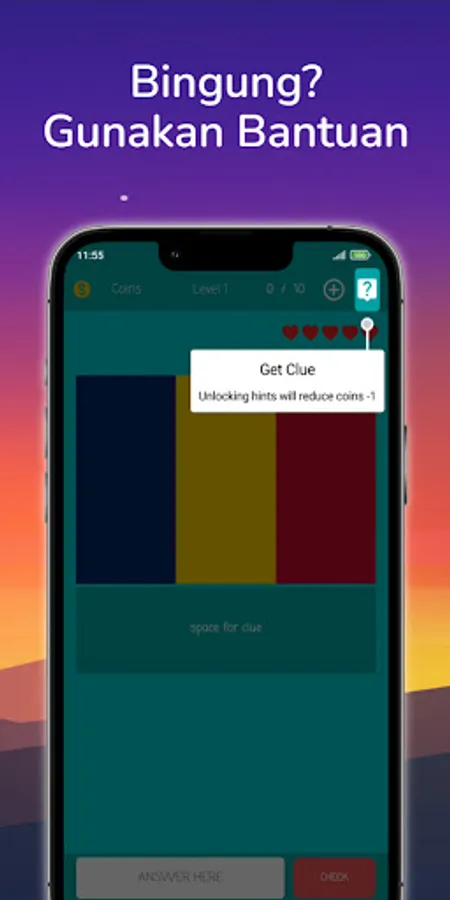 Jangan lupa untuk mengumpulkan koin dengan mengklik tombol plus(+) di pojok kanan atas layar. Koin-koin ini akan membantumu untuk menggunakan fitur bantuan. Tetap bersemangat dan kumpulkan sebanyak mungkin koinnya!