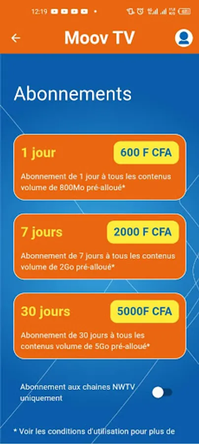 The MOOV TV Application is offered to users of Moov Africa Gabon Telecom residing in Gabon.