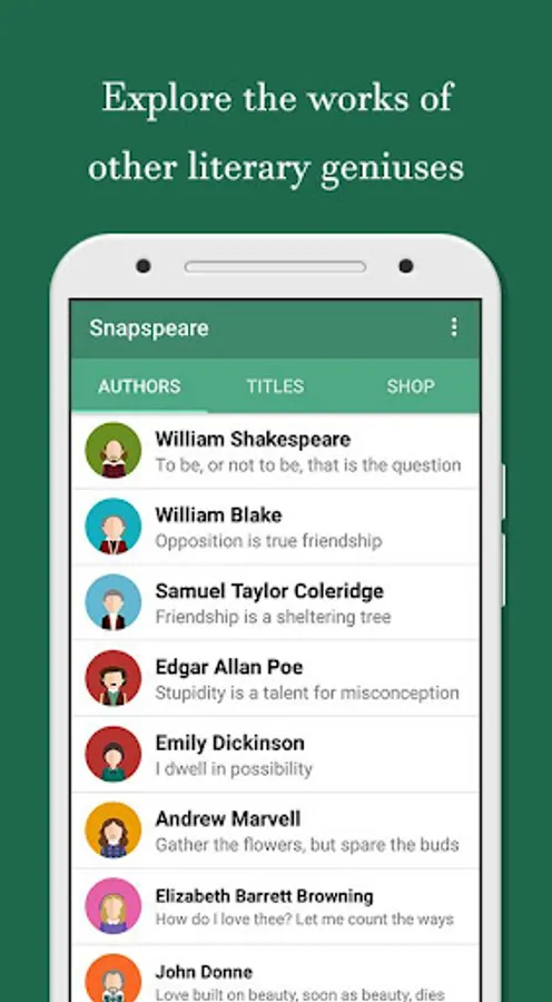 Boredom is a thing of the past - discover the full collection of Shakespeare’s works from your smartphone. Whether the works are stories, sonnets or poems, we’ve got you covered. Combining classic literature with modern technology, reading just got a whole lot more fun!