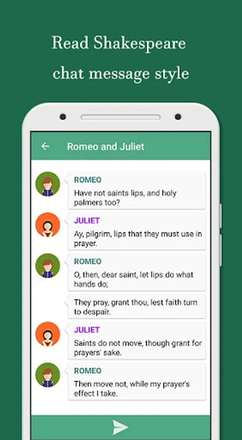 When reading Shakespeare, you may think to yourself, “it’s all greek to me!” Fear not friend - with this text messaging style, you can enjoy the great works of the grand master at your own pace. You may prefer to see the messages flash by in the twinkling of an eye, or analyse them word for word and lose track of time - the choice is yours, my friend!