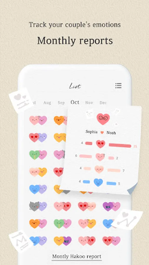 Every time you answer a question, you can select and share how you’re feeling that day. At the end of the month, our little helper (and EggMon’s best friend) Hakoo will gather it all and share the record of your love with you!