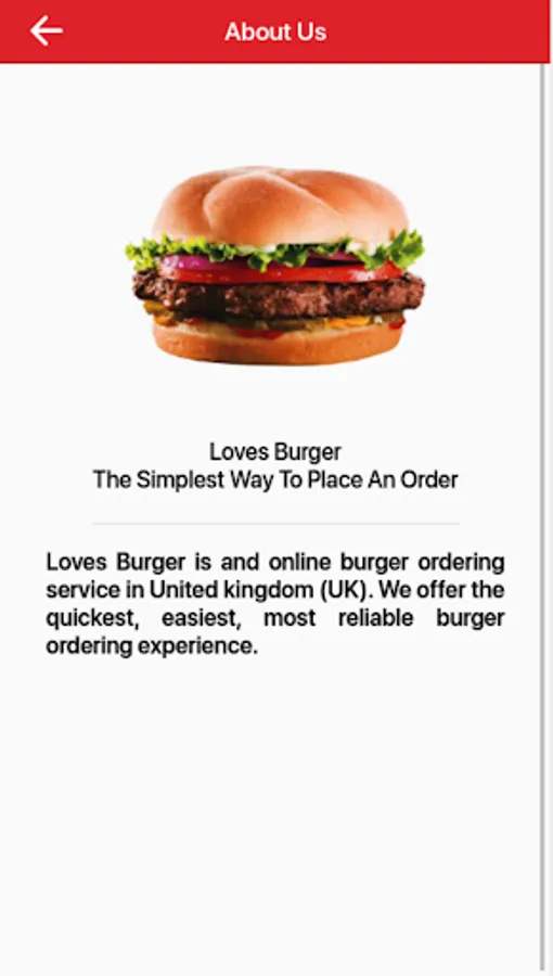 our loves burger app provide online delivery for our customer. It's user friendly UI provide an easy way to interact with app. User can order fast food by simply clicking on items and can increase it's quantity by clicking on add button