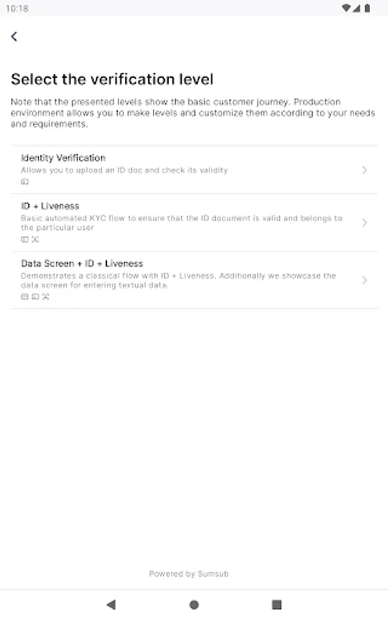 This application provides you with a real-time identity verification experience. Sumsub’s all-in-one verification platform secures every step of the customer journey. With Sumsub’s customizable KYC, KYB, KYT, and AML solutions, you can orchestrate your verification process, welcome more customers worldwide, speed up onboarding, reduce costs and steer clear of digital fraud.