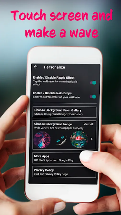 Water Magic Touch Live Wallpaper is a beautiful live wallpaper which has a Water rippling effect when you touch the screen.