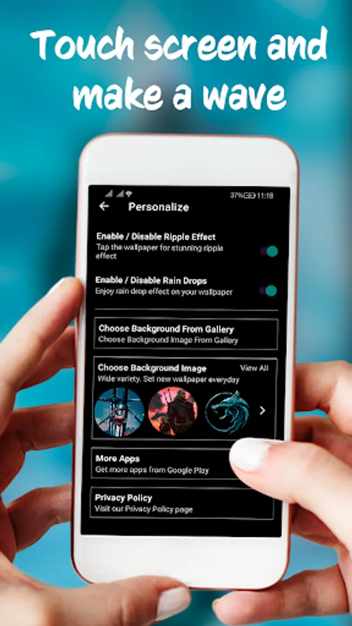 This clear waterdrop live wallpaper app (home screen background) is a free app that has a large collection of HD live wallpapers.