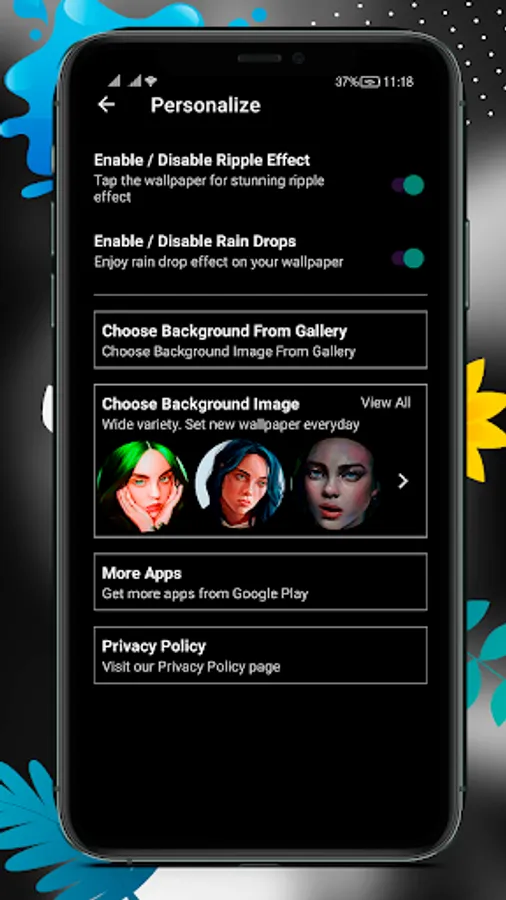 To develop more free great live wallpapers, we have implemented some ads in settings.
