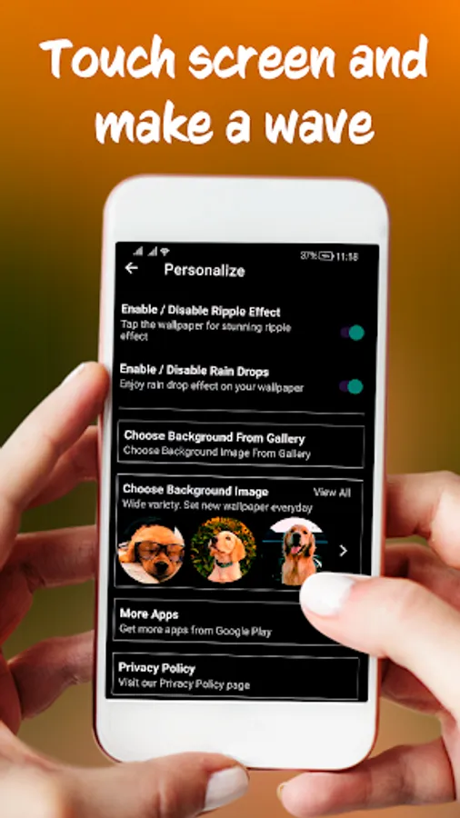 This clear waterdrop live wallpaper app (home screen background) is a free app that has a large collection of HD live wallpapers.