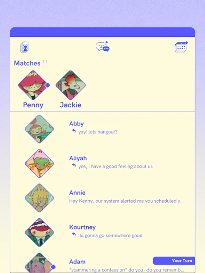 Tender is a narrative game that explores connection and rejection in the era of swipe culture. It’s a story told by and through the modern interface for finding love.