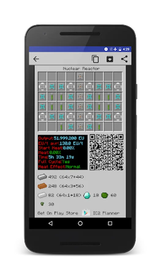 The application helps you to create effective reactor designs for Industrial Craft Experimental and GregTech Mods.