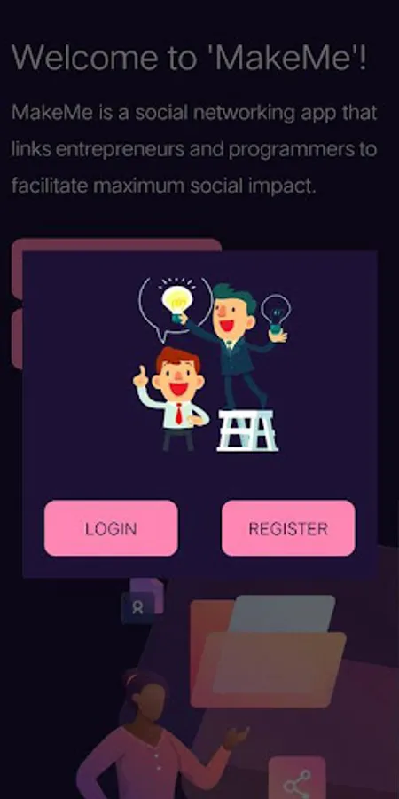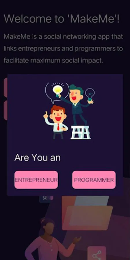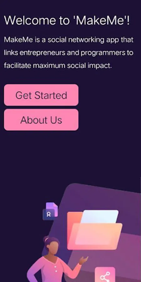 MakeMe is a Social Networking App, that links entrepreneurs and programmers to facilitate maximum social impact.