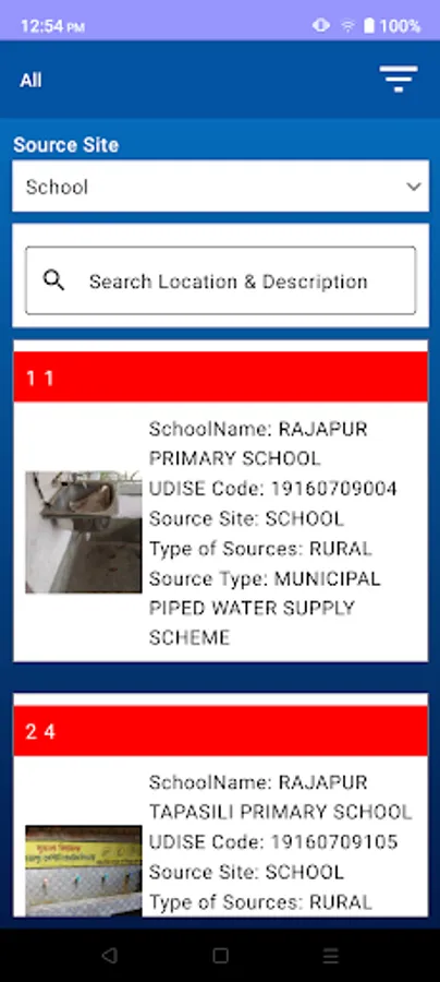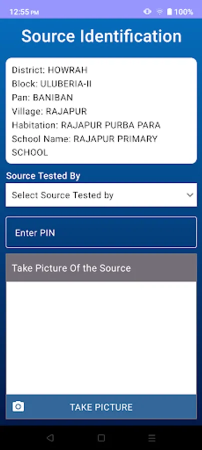 1. District, Block, Panchayat selection option up to location description for each water source.