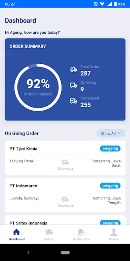 The order application used by PT Sunan Inti Perkasa for order management allows directors and managers to track order status from anywhere and anytime.