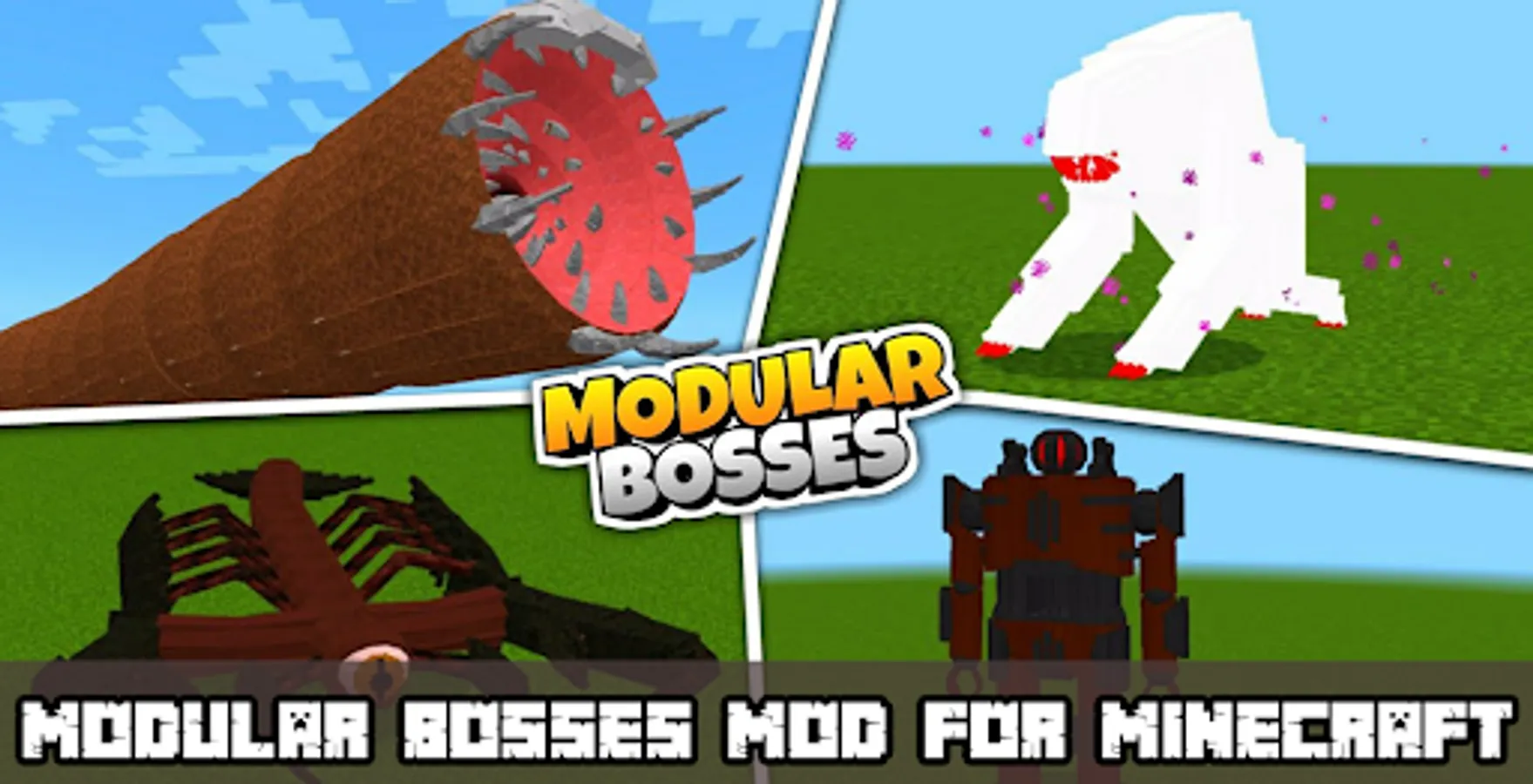 With the mod Modular bosses mobs & skins mcpe, you can have fun with minecraft bosses mod that you have never tried and encountered on mcpe before. You can compete with the boss mod for minecraft for the strength of each of them, then you will find out which of the bosses titan mod for minecraft is the strongest and most powerful. In trying modular bosses mod for mcpe it is more recommended in survival mode to make it more challenging.