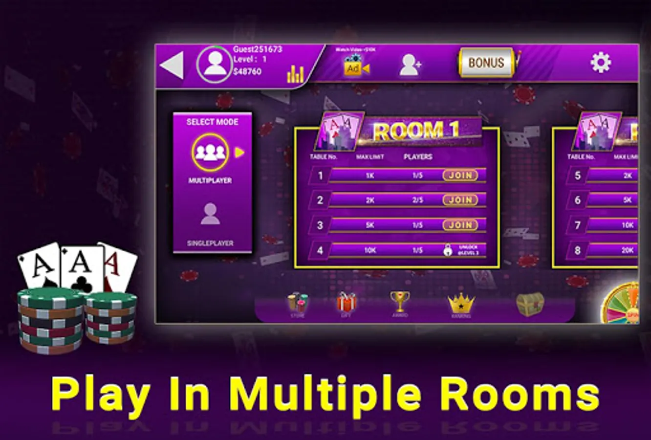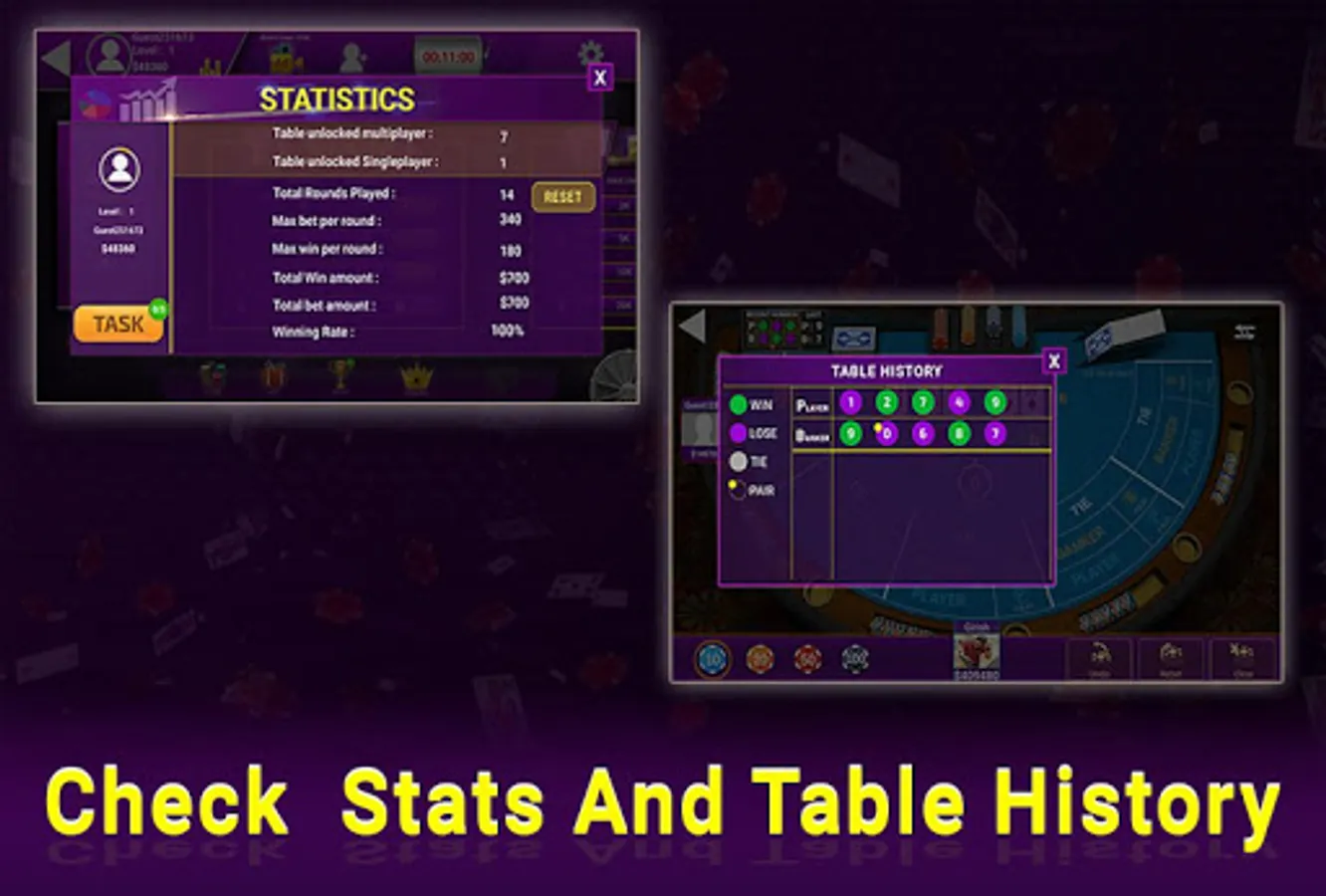 Play with your social friends on our modern multiplayer Live Baccarat tables. There are various tables to choose from as you cross Levels and unlock bigger Casino rooms.