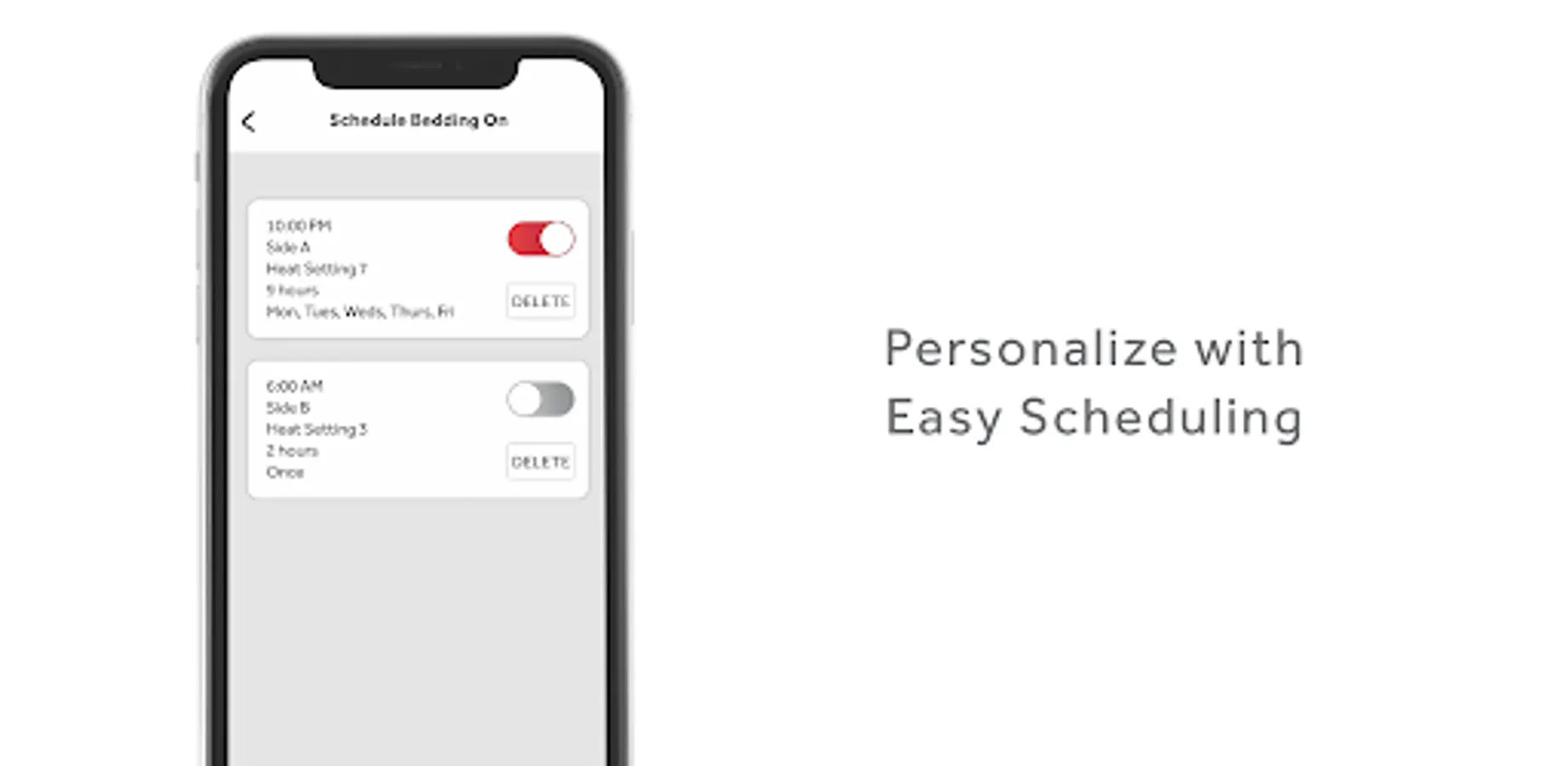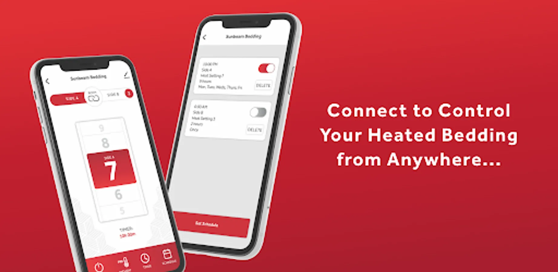- Easily create schedules to automatically turn on/off your bedding