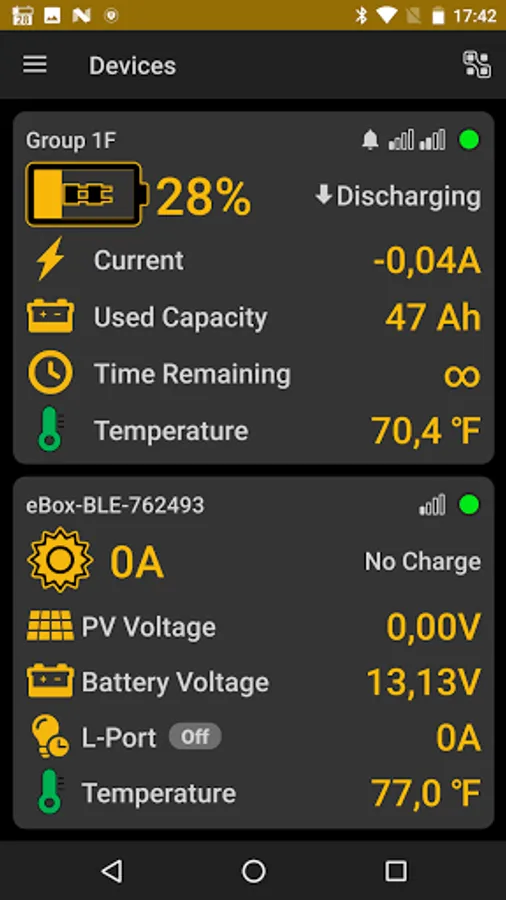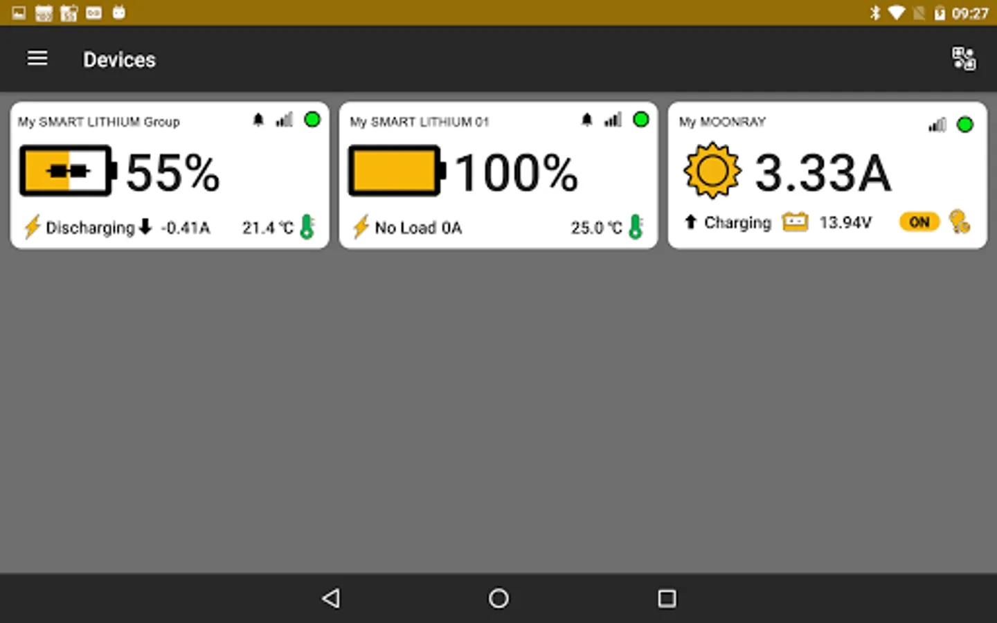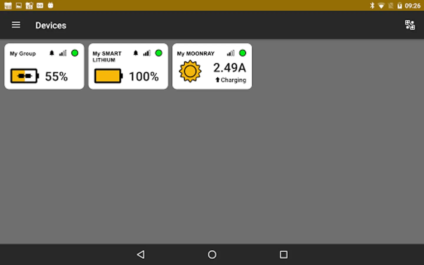 Connects simultaneously to all SUNBEAMsystem devices onboard. No need to manually alternate and connect to different devices or investing in a special onboard network. Configurable grouping of multi devices to show them as one cluster. According to your personal configuration you will be able to display the whole cluster as one unit. Name it as you like and conveniently display the joint data as one.