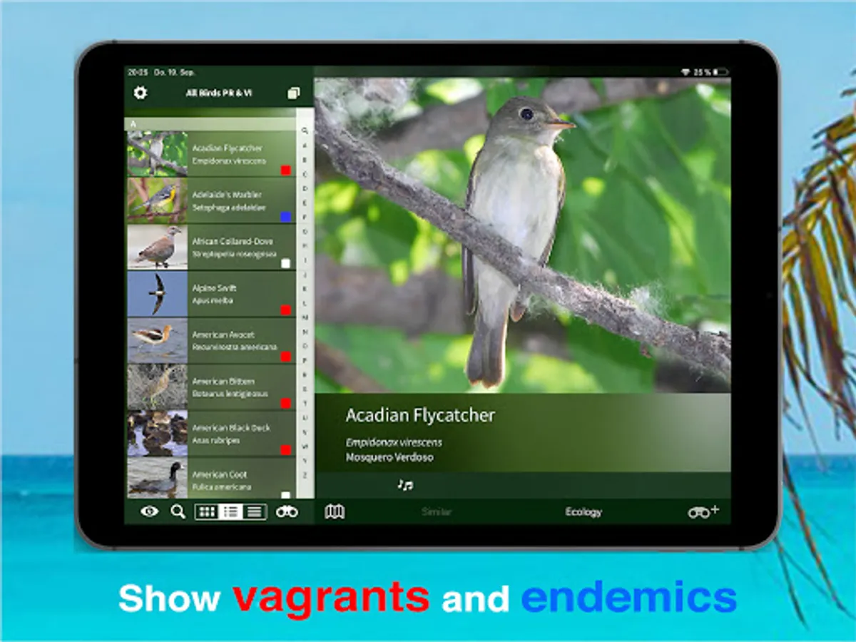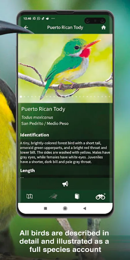 It covers common bird species but also all migrants, vagrants, and established introduced species. This bilingual (English and Spanish) app provides at your fingertips a mini-encyclopedia with extensive text as well as visual and audio resources.