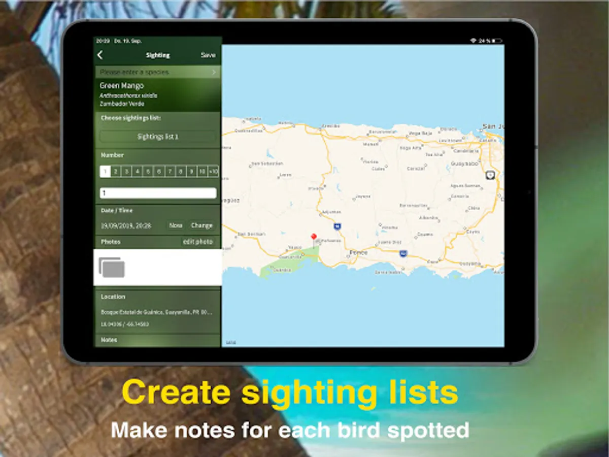 • Automatically pinpoint location of all bird sightings via GPS (editable)
