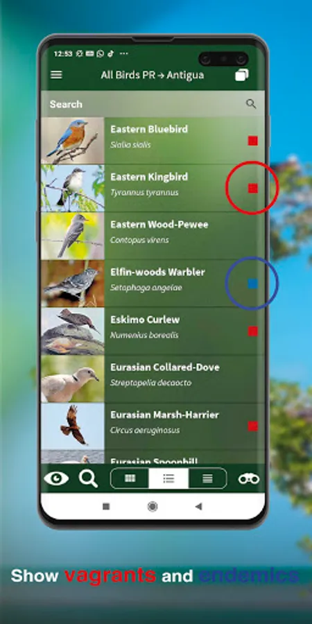 • Sort and display species in three modes: alphabetical, gallery, and taxonomic listing views