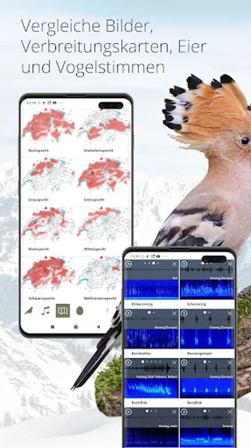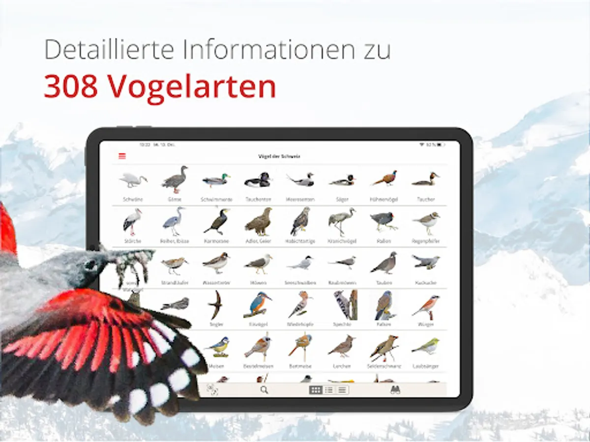With the “bird guide Birdlife Switzerland” you can get to know and identify all bird species native to Switzerland. The free version is fully functional and includes all native species. It can be expanded with paid subscriptions, which can also be canceled at any time.