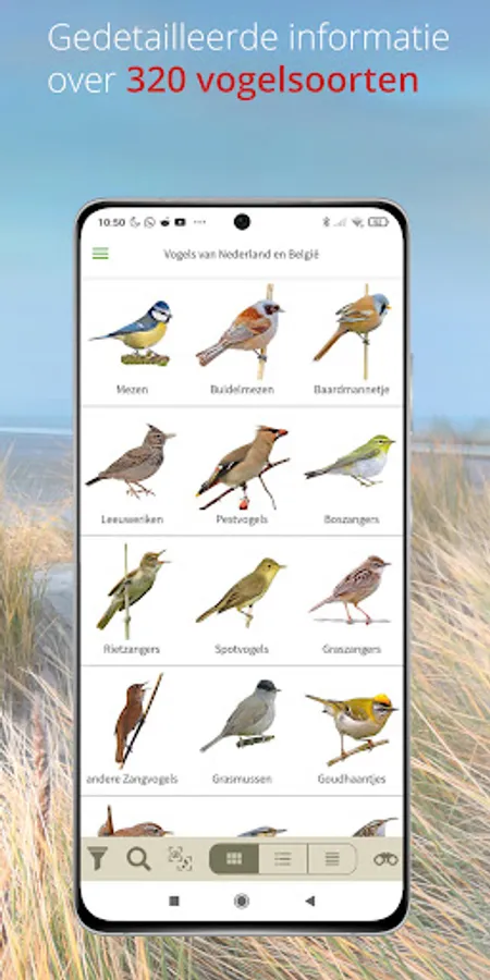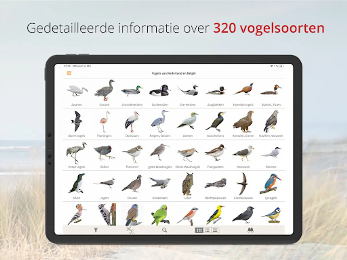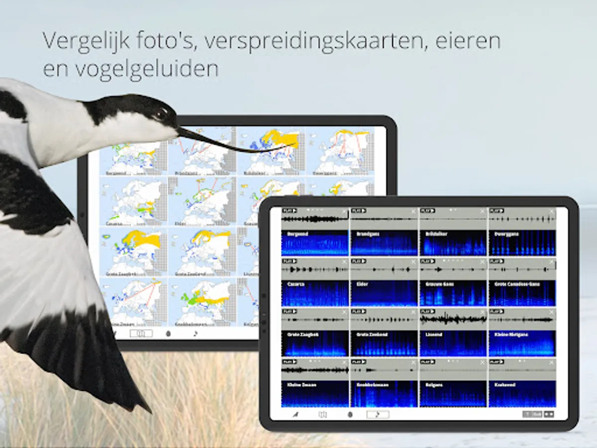 This field guide, published by the renowned Bird Information Center on Texel, is ideal for both novice and advanced bird watchers. With the free version of the app you already get a comprehensive package of all 320 most common bird species and many functions.