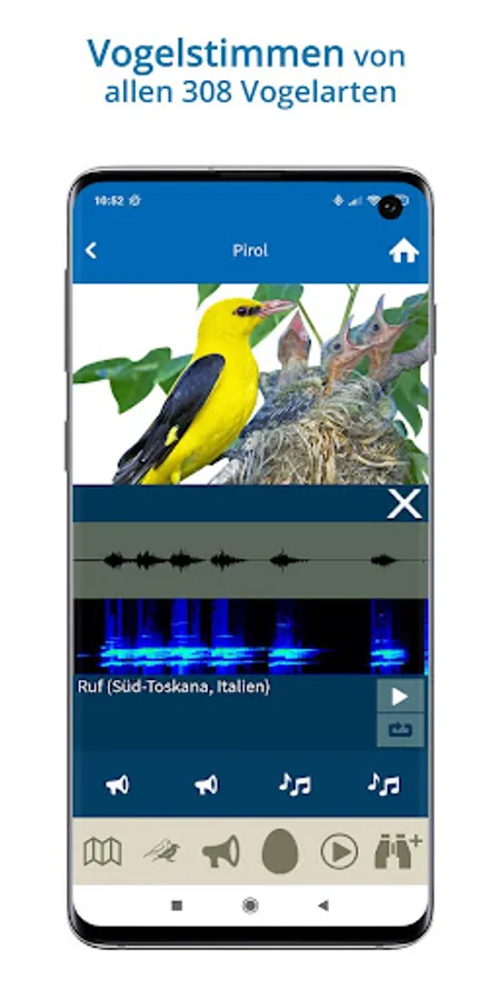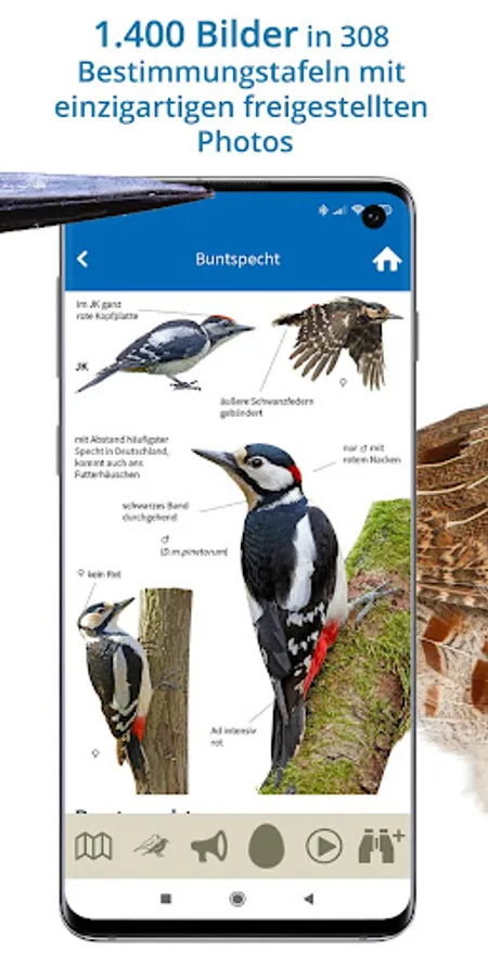 • Bird calls with 1000 songs, calls or the drumming of woodpeckers from all 308 bird species 3.99 €