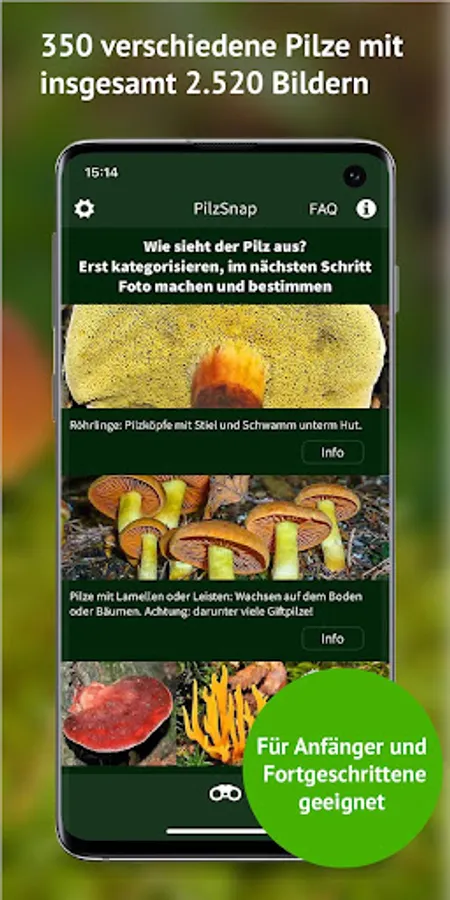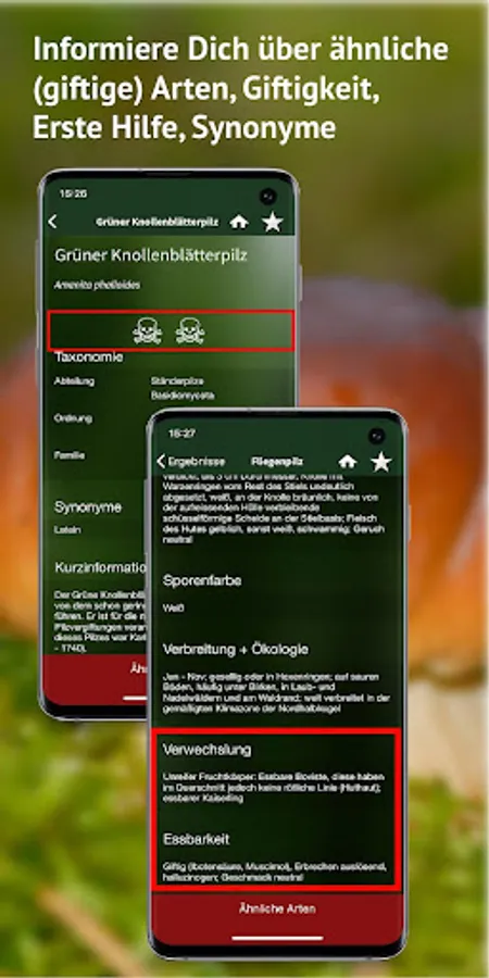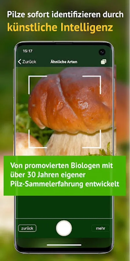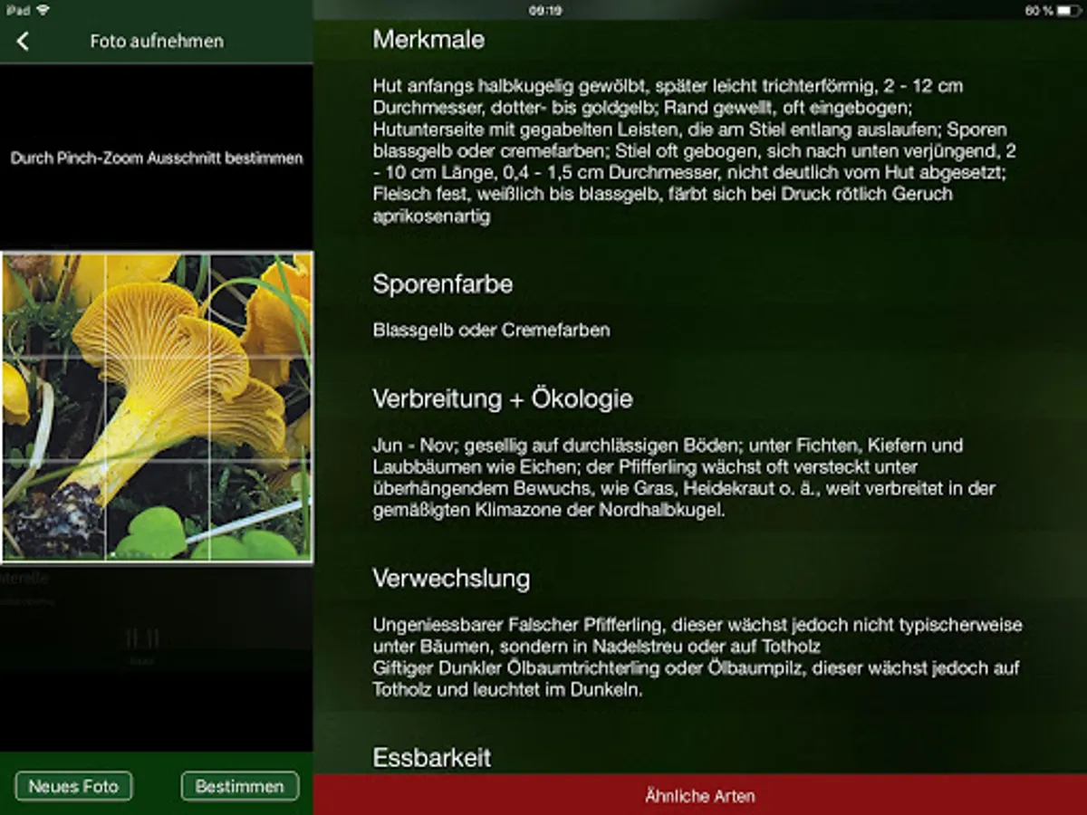The app was developed by a doctorate in biology with over 30 years of mushroom collecting experience. This experience helps even the inexperienced user to distinguish safely edible mushrooms from their poisonous doppelgangers in the field. He learns under which trees which mushrooms grow and receives a lot of important information in the extensive texts on each species.