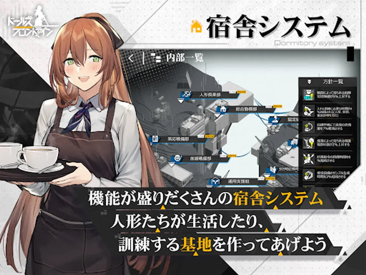 Tactical dolls can be strengthened by various means such as organization expansion, skill strengthening, equipment, and fairy.