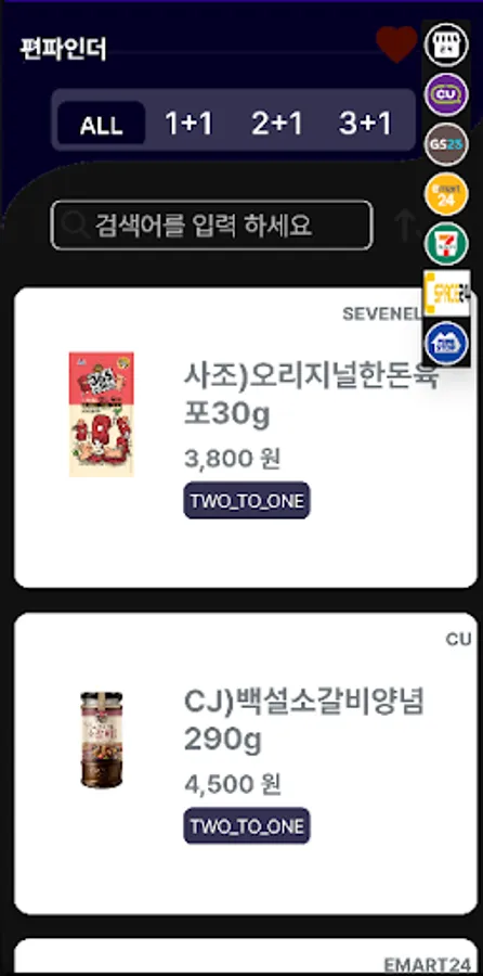 We provide cu, gs25, Emart 24, 7-Eleven, Seaspace, and Ministop.