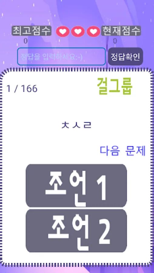 여자아이돌 과 남자 아이돌 그룹의 그룹명의 초성을 보고