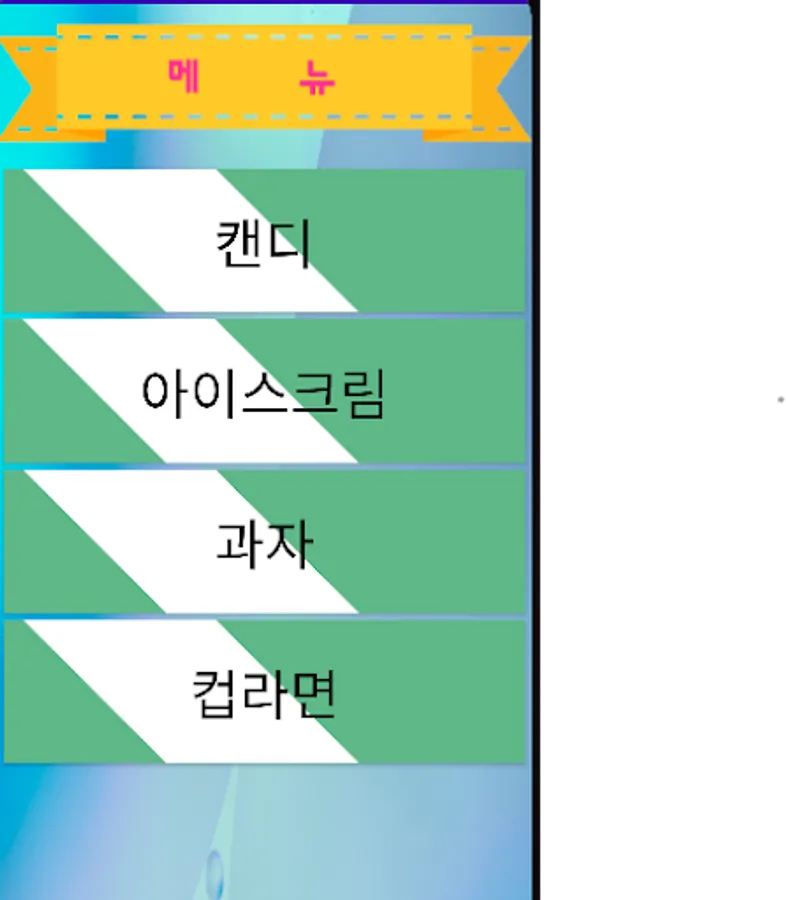 The menu was divided into candy, ice cream, snacks, and cup noodles.