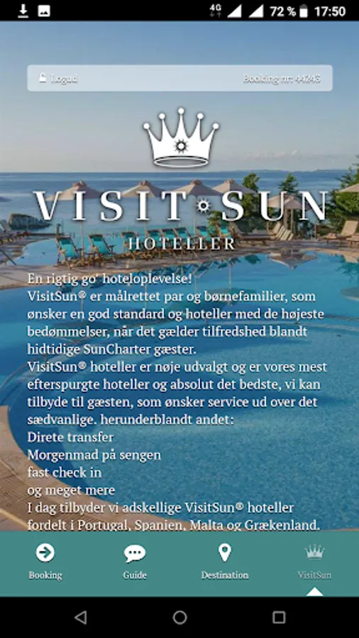 Your journey starts here - in SunCharter Guest App. Here you can dream yourself away to your next vacation, find travel inspiration, plan excursions and write with your tour guide. Check up on flying times before departure and check the weather at your destination. Very good holiday!