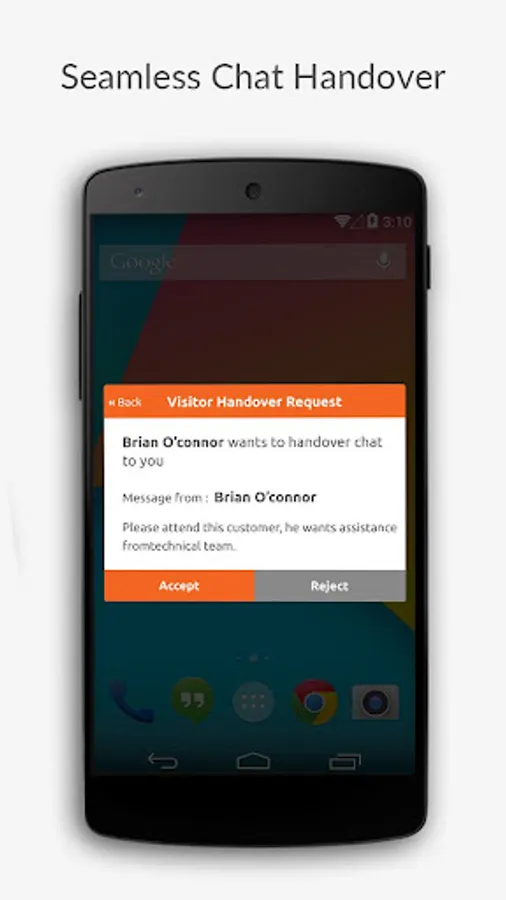 Chat Handover - Chats can be easily handed over to other team members to draw on their expertise.