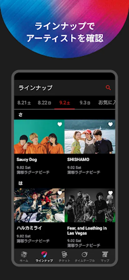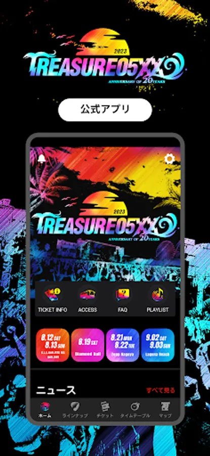 It is an app equipped with information and functions to conveniently enjoy the event, such as performing artists and timetables, ticketing/entrance, venue maps and information.