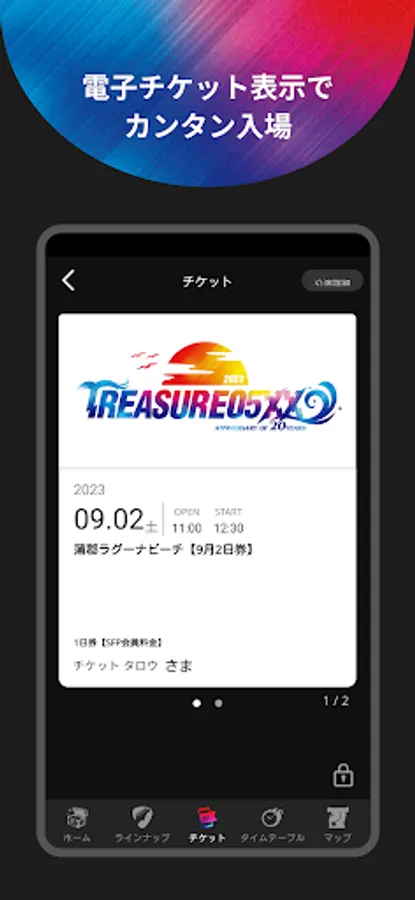 When you enter, just press the stamp on your smartphone screen! In addition to issuing tickets, you can also apply for reserved seats in front of each artist from the app.