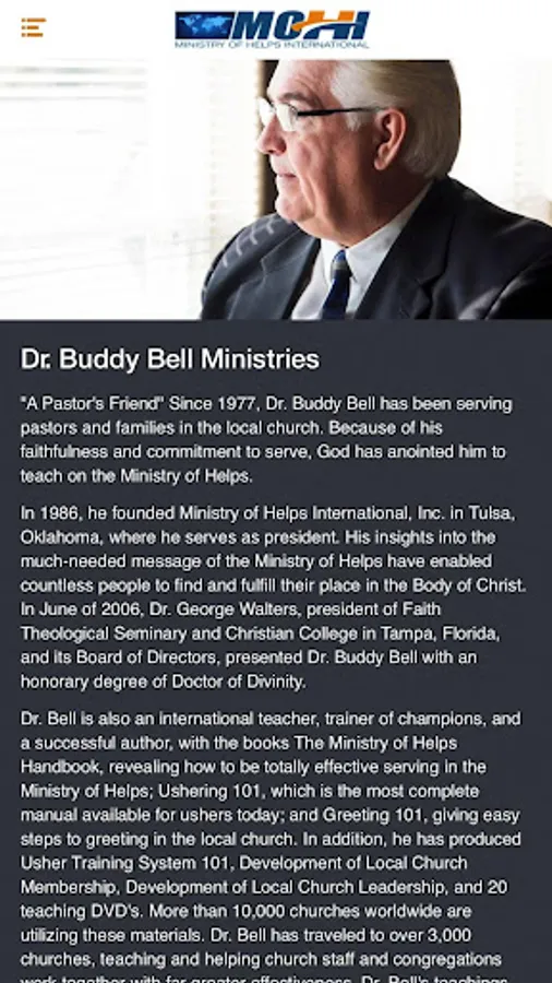 Explore videos and articles from Dr Buddy Bell, receive push notifications and much more from the MOHI | Ministry of Helps International app. The Ministry of Helps International is truly a Ministry That Helps The Local Church. Over 35 years ago, Dr. Buddy Bell obeyed the call of God to be a Pastor's Friend to Pastors. Through his travels across the globe, Dr. Bell has had the opportunity to teach on HELPS: Having Enough Loving People Serving in more than 3,000 churches. Dr. Bell has trained thousands of ushers and greeters thru the Serve Workshop and has held hundreds of Team Workshops around the world.
