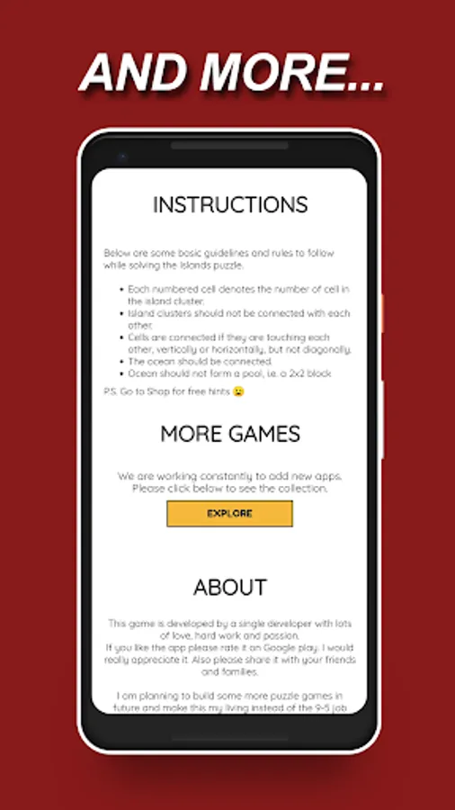 Islands is a puzzle game that is based on the Japanese puzzle, Nurikabe.